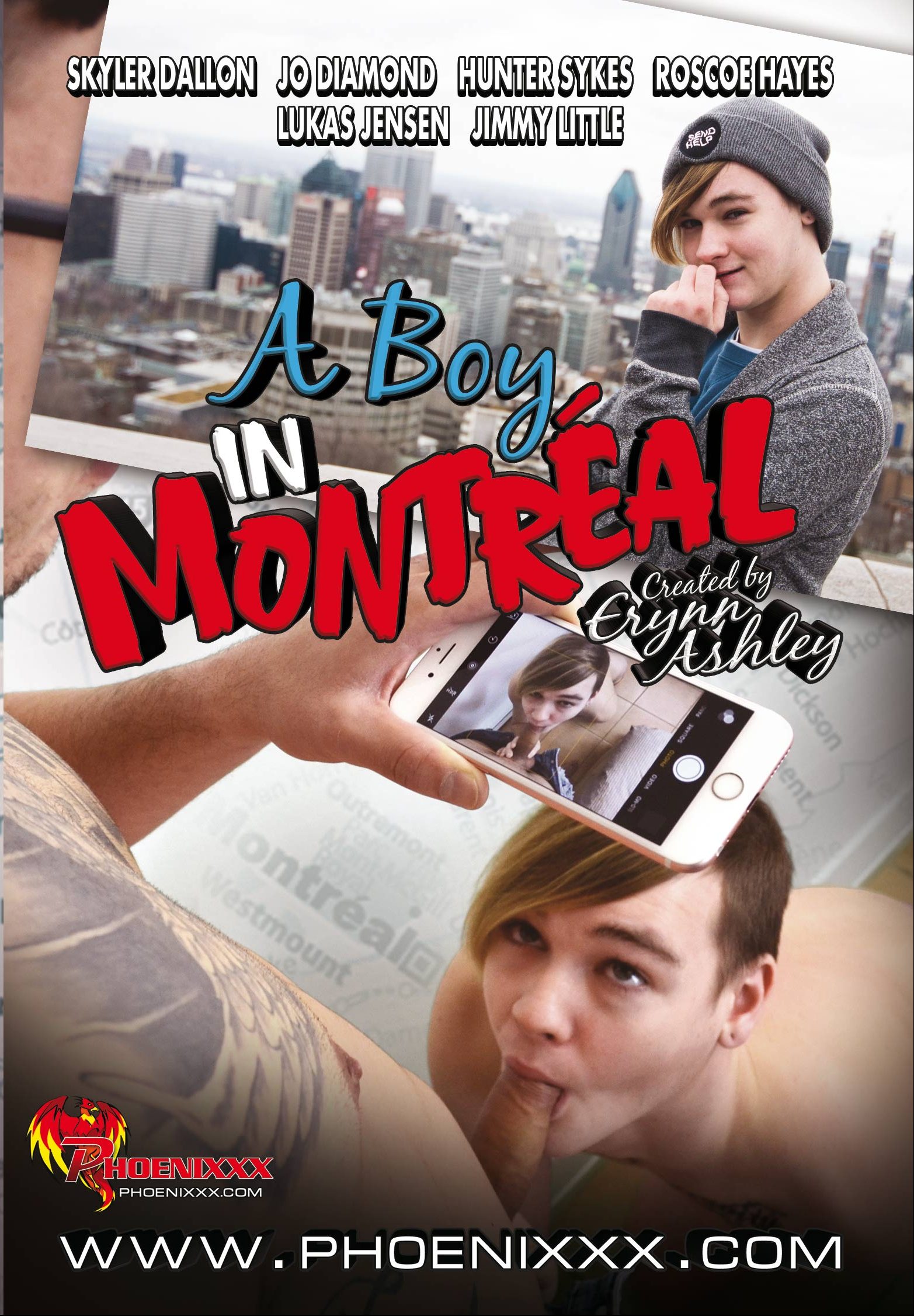 Young Skyler Dallon’s just moved to Montreal and he’s documenting all his adventures, and HOT hookups, on video! Naturally, while exploring the city, he ends up involved in the sex lives of his cute new friends, too: Hunter Sykes, Jo Diamond, Roscoe Hayes, Lukas Jensen, and Jimmy Little!